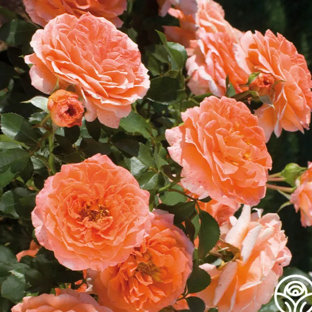 This bushy and compact Floribunda makes an amazing, low-flowering hedge or a perfect choice for containers as she grows to 3’ tall and 2’ wide. The salmon-orange, ruffled flowers have a petal count of 60-80 which opens to reveal bright, golden stamens. Adobe Sunrise™ makes an excellent cut flower and is a favorite of the bees! This plant will provide continuous blooms all summer long with the most stunning colors if given full sun to maintain her vibrancy. Particularly stunning for mass planting.