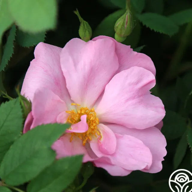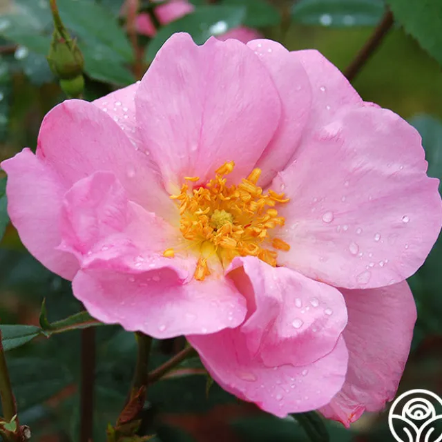 - One of Griffith Buck’s most popular roses, this charming Climbing Rose is very fragrant with the scent of apples and cloves. These large, pink single 3.5″ blooms of 5-12 petals are produced on an arching bush with mid-green foliage that shows the texture of one of its parents, the wild rose ‘Rosa Laxa.’ A very vigorous upright bush with arching canes, she also may be grown as a short climber. Winter hardy in the midwest without protection. AppleJack will make a great showing even in dappled sun as it is shade tolerant too!