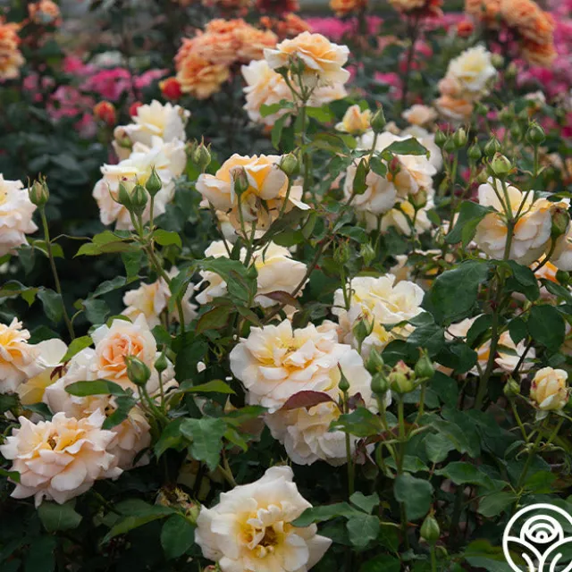 Introduced in the 1960s, Apricot Nectar™ offers a strong, fruity fragrance and beautiful, ovoid buds that gently unfurl into large, 4”, cupped, double blooms. We love her wonderful shade of soft clear, almost velvety apricot against dark green, glossy foliage. This Grandiflora produces small clusters of almost Hybrid Tea-like blooms on a vigorous, continual blooming bush. Perfect in zones 7-10.