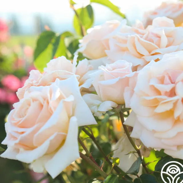 Apricots n’ Cream™ is right on trend with apricot petals blending into creamy ivory edges that stand out against the beautiful, dark green foliage. We love her for her large 4.5”, cupped, double blooms and 45+ petal count. She is a vigorous grower and has much better disease resistance than the average Hybrid Tea. Apricots ‘n Cream™ is compact and reblooms in flushes throughout the season. This rose makes a great potted rose but also thrives in the front of beds and borders since she is only 3’ tall.