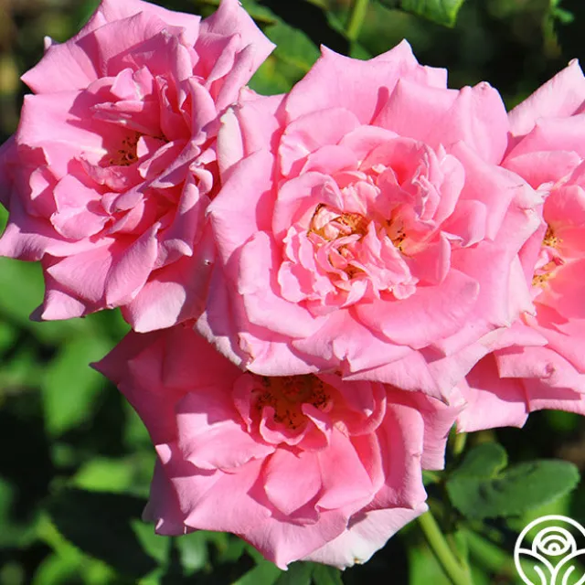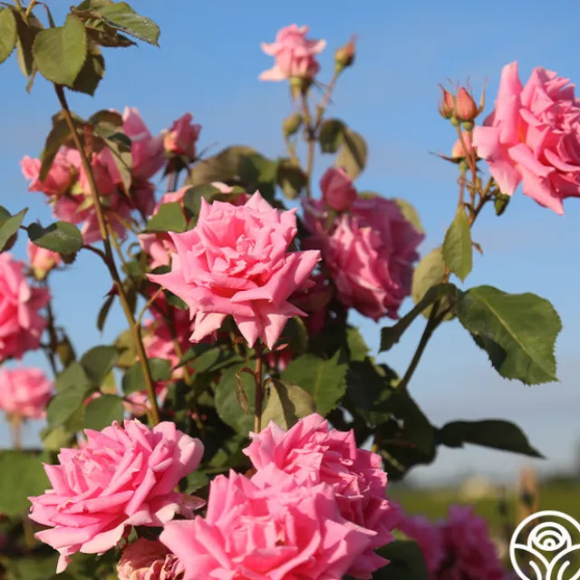 - Aunt Honey is a delightful Hybrid Tea with large 4-5” blooms with 36-42 petals of rich rose-pink shading lighter toward the outer petals. This beauty features a rich damask perfume with blooms borne in clusters of 3-8 on a continual blooming, compact, upright bush. Well foliaged with light-green serrated edges, she is winter hardy in the midwest without protection.