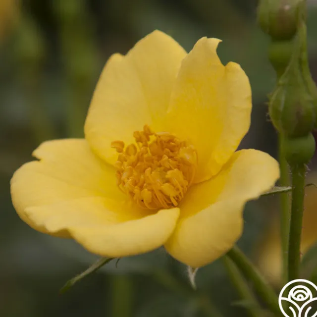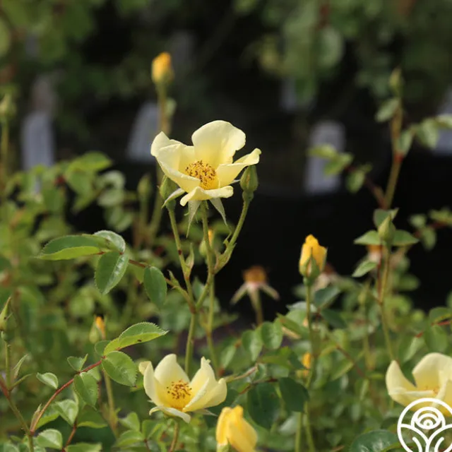 Baby Love® is upright and densely foliaged with bright, green leaves that create a backdrop for a profusion of blooms. The abundance of rich, buttercup yellow, single flowers are about 2 ½” and have eye-catching golden centers. Her sweetly fragrant flowers are produced in small clusters on short stems. Baby Love® is a standout in the garden and almost always covered in blooms.