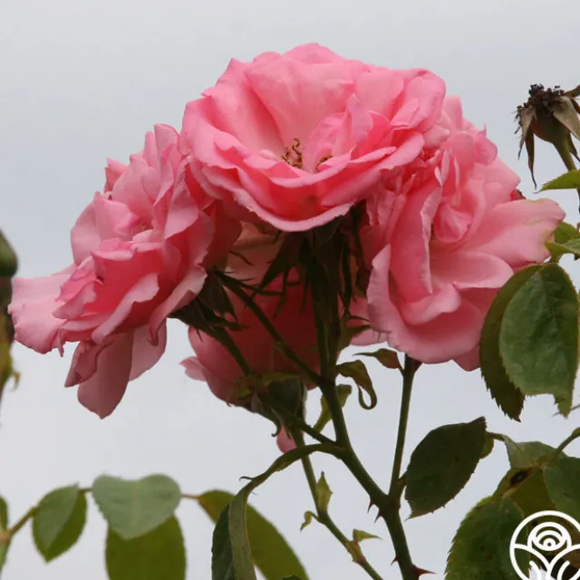 EASY- TO-GROW CLIMBER! Bred from New Dawn™, Bantry Bay® features high pointed buds that open into attractive, deep, 4″, pink, semi-double blooms with golden centers. She is a vigorous, continual blooming, easy-to-grow Climber with dark green, glossy foliage to contrast her blooms of 17-25 petals each.