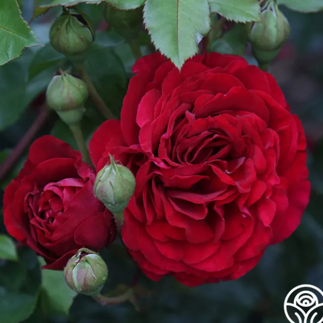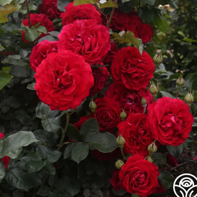 Braveheart™ pushes out beautiful, double, 4” blooms with 17-25 petals in an old-fashioned flair. He is the richest, deep, royal red and has a wonderful velvety texture. His luscious, dark green foliage provides a perfect backdrop on this continuous blooming bush for the strong blooms.