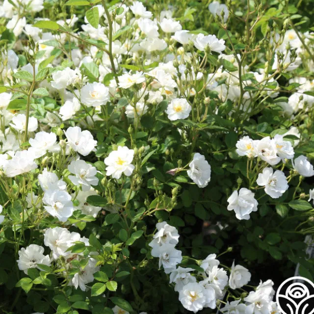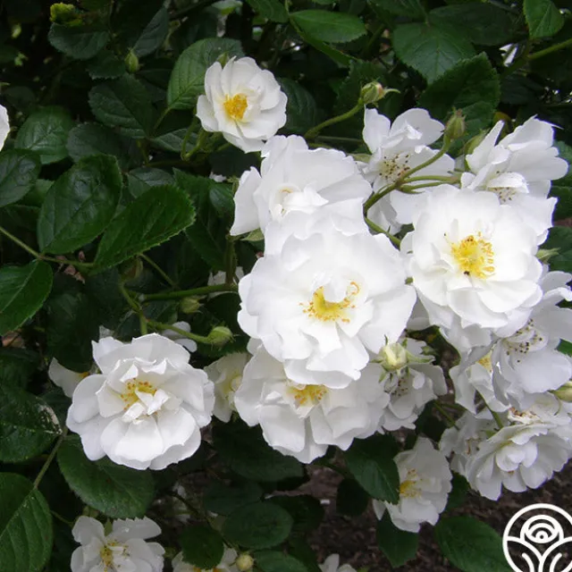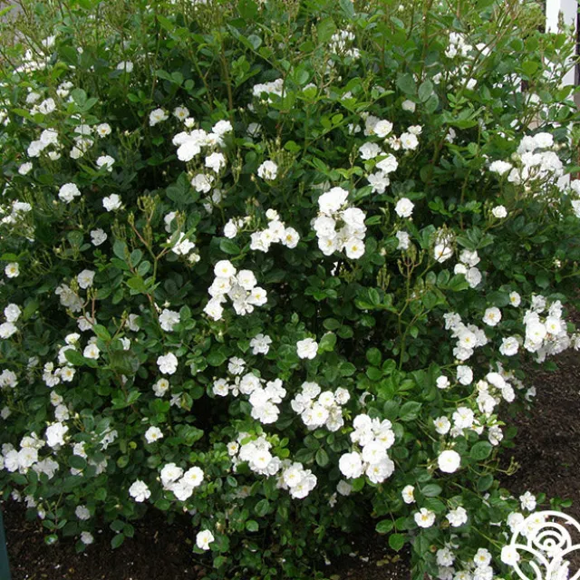 This rose is in memory of a young lady who stood up for her faith in God and lost her life at Columbine High. Cassie is covered with semi-double, 1 ½” blooms of pure white borne in large clusters. Her mild, honey perfume can be enjoyed from spring until fall and her shiny, medium green foliage provides the perfect backdrop for her continuous snowstorm of blooms. Cassie won the American Rose Society’s trial ground Silver Medal.