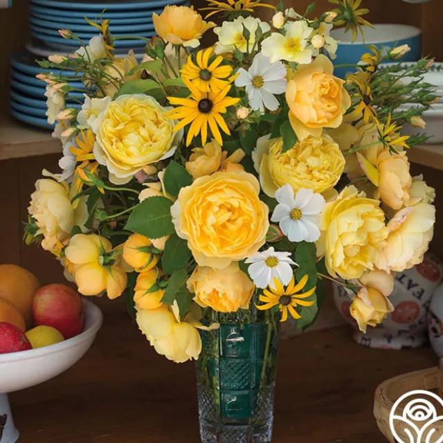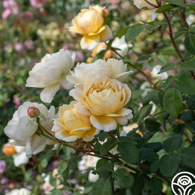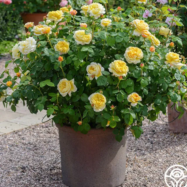 This large Shrub has a delightful strong fragrance that varies between a soft, floral tea and almost pure lemon depending on weather conditions. According to David Austin, Charles Darwin®’s blooms are some of the largest to be found in the English Roses. His flowers are very full and rounded opening to a shallow cup in a lovely shade of rich yellow similar to Old Gold. Occasionally, the 140+ petals have a lemony or sandy tint. We prefer to plant Charles Darwin® in the front of a mixed bed so he can receive the attention he deserves.