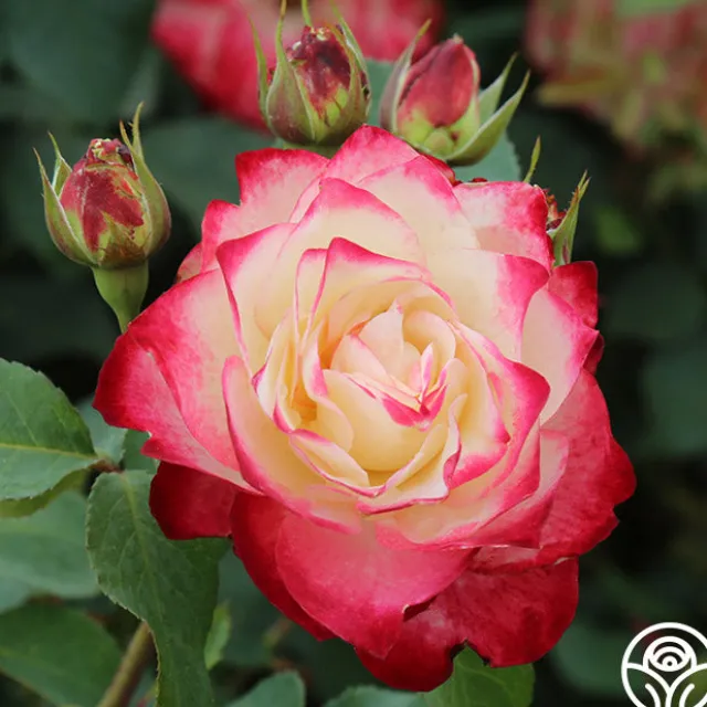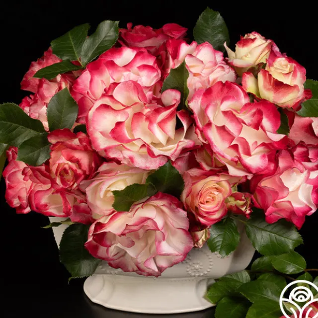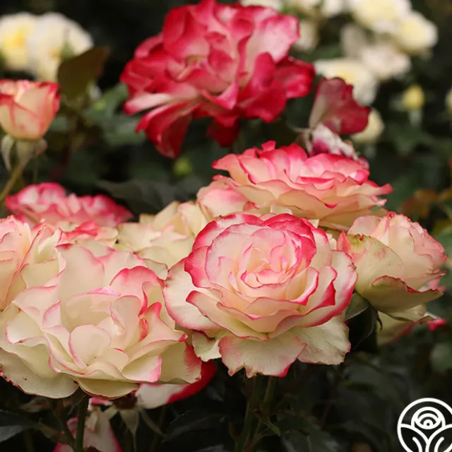 Cherry Parfait™ is a delicious rose with creamy petals dripping in cherry red. Her 4.5” cupped blooms with 30+ petals pop against her intense, dark foliage. She almost looks unreal! Cherry Parfait™ is extremely hardy and performs in all climates and stays compact at 3’ x 3’ so she can be added to every garden – large or small. We love her in beds, borders, or pots!