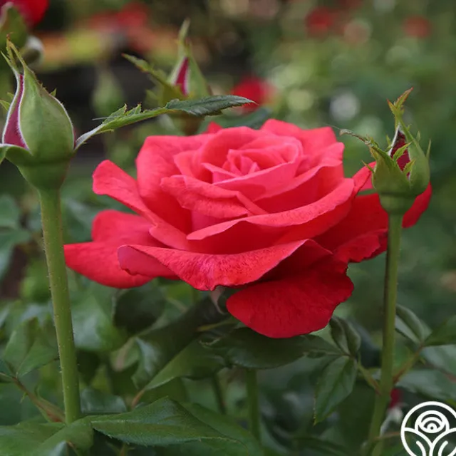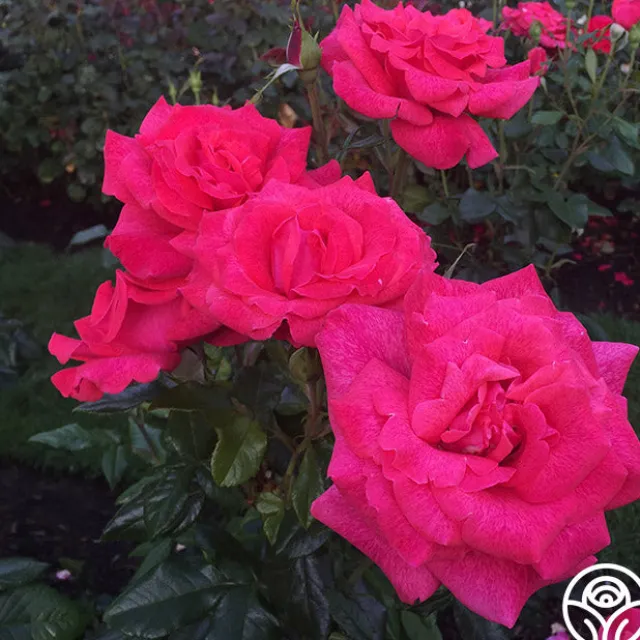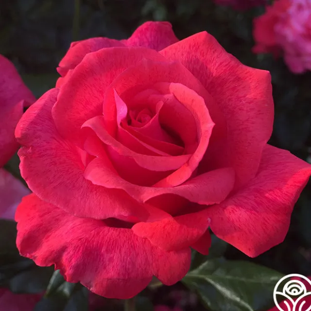 Cinnamon Dolce™ is a vigorous, upright plant producing exhibition-quality blooms. Her blooms have a cup-like form with 30+ brick red petals scattered with deep pink specks. She is exceptionally fragrant, and her flowers bloom continuously against dark green, semi-glossy foliage. Cinnamon Dolce™ is also very disease resistant to mildew and rust, making her a great rose for western states.