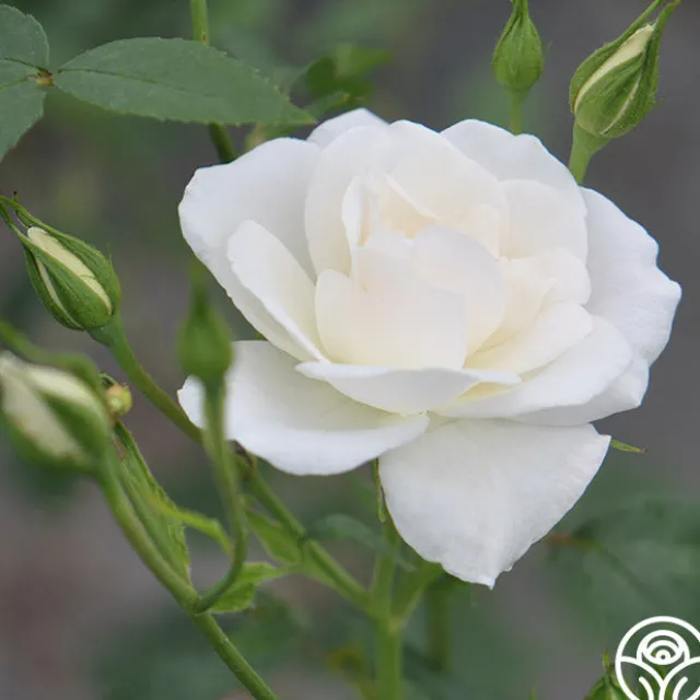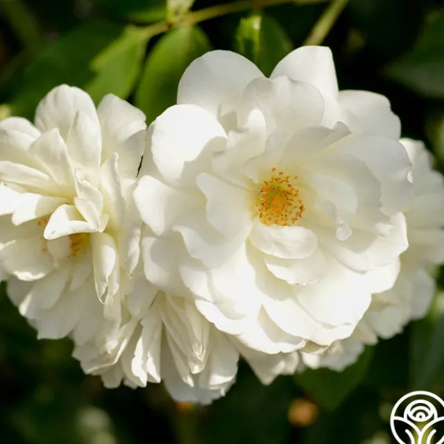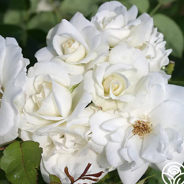 This rose is the continual blooming sport of the outstanding Floribunda, Iceberg. In the spring she is covered with clouds of pure white, 3“, semi-double blooms of 20-25 petals which exudes a gentle, sweet, honey fragrance. Expect her to reach heights of 8-15’ with ease.