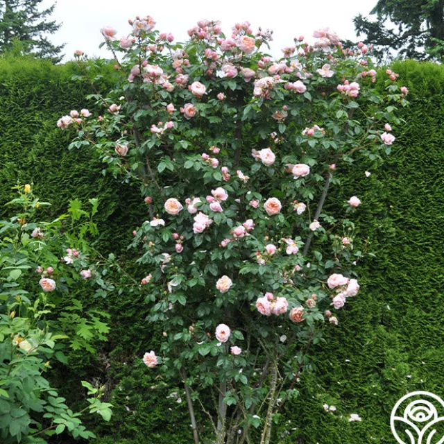 Colette® has a great soft pink look to her with an outstanding sweet fragrance. Some consider her scent to be more of a spicy musk like tea or even closer to a damask. She will bloom continuously from May all the way until the first freeze of the season. Colette®’s big 3 ½”blooms with 135+ petals and numerous frills give her a lovely, antique look. This very disease resistant variety makes a great cut flower. We love her especially on trellises, arbors or arches.