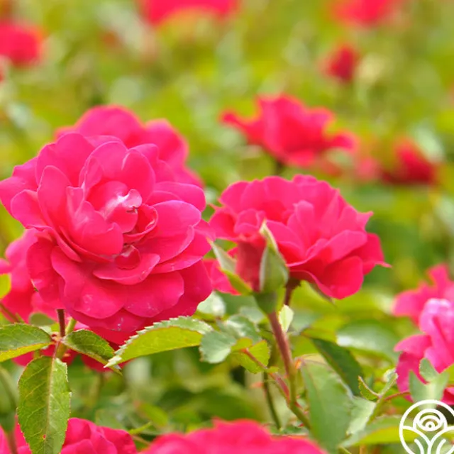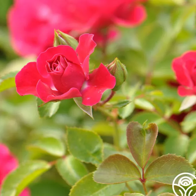 Crimson Floorshow pushes out an abundance of bright, crimson-red, double, 2 ½” blooms that open to reveal rich, golden centers. Crimson Floorshow is a continual blooming, mounding, and spreading plant with rich, leathery, dark-green foliage. She makes a great display in the garden with contrasting colors.