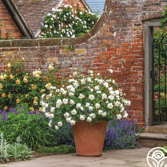 What sets this rose apart is its lovely fragrance. The strong Old Rose scent carries hints of almond blossom, cucumber, and lemon zest, making it a sensory delight. With its neat, rounded, and bushy shrub form, it’s a perfect choice for borders and hedges. Its compact size also makes it well-suited for containers, offering versatility in garden design.