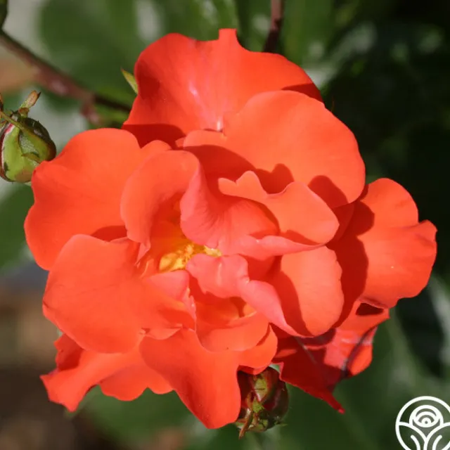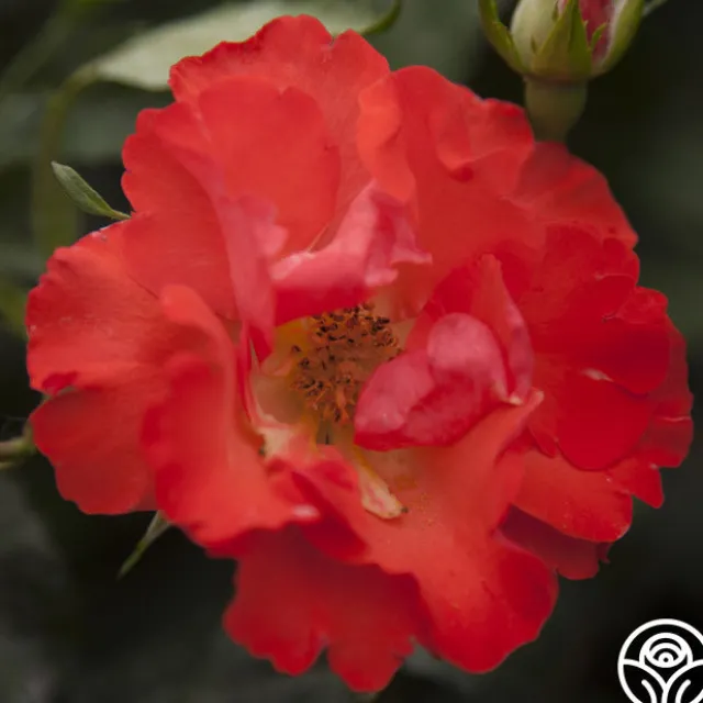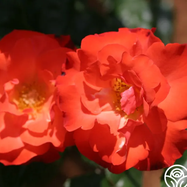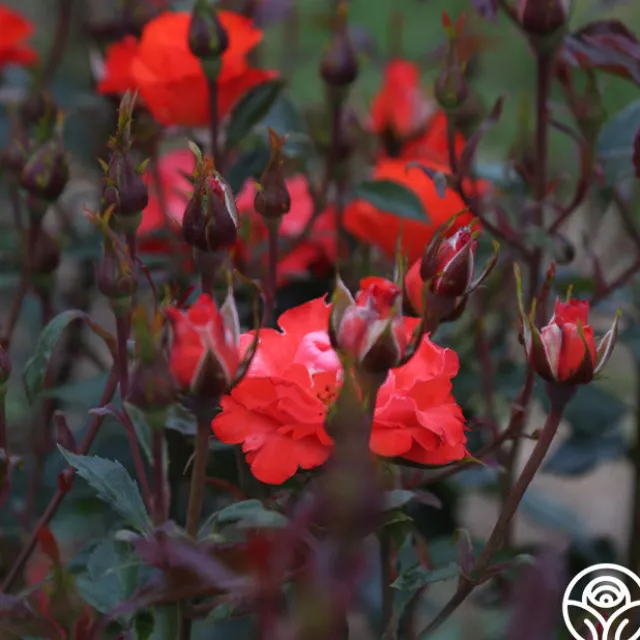 Disco Dancer® pushes out almost luminous orange-scarlet, semi-double, 3” blooms that cover the plant. Her dark green, disease resistant foliage makes this continual blooming bush a wonderful rose for a hedge or mass planting.