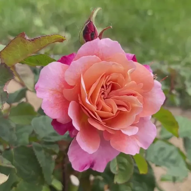 - A rare beauty, Distant Drums is a wonderful shrub rose with unique colorings with ruffled petals that are bronze-brown in the center shading to lavender toward the edges. Bred from ‘September Song’ X ‘The Yeoman,’ her large, cupped, fully double 4” blooms of 24+ petals are heady with a myrrh fragrance. Distant Drums is an outstanding rose on a continually blooming upright bushy plant.