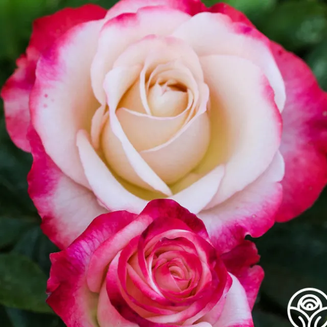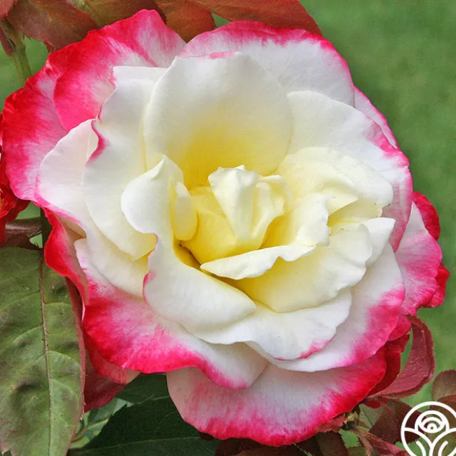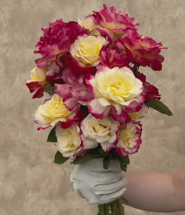 This rose stands out with her beautiful double blooms with an eye-catching color combination and fantastic, strong fragrance. Double Delight® produces large, somewhat informal, old-fashioned blooms of 24-30 petals. Her flowers are a rich, creamy white with strawberry-red edges making her an immediate focal point. Her coloring and bloom size are at their best during warm days and cooler evenings. She’s a must have for any garden in zones 7-10 and is an all-around customer favorite.