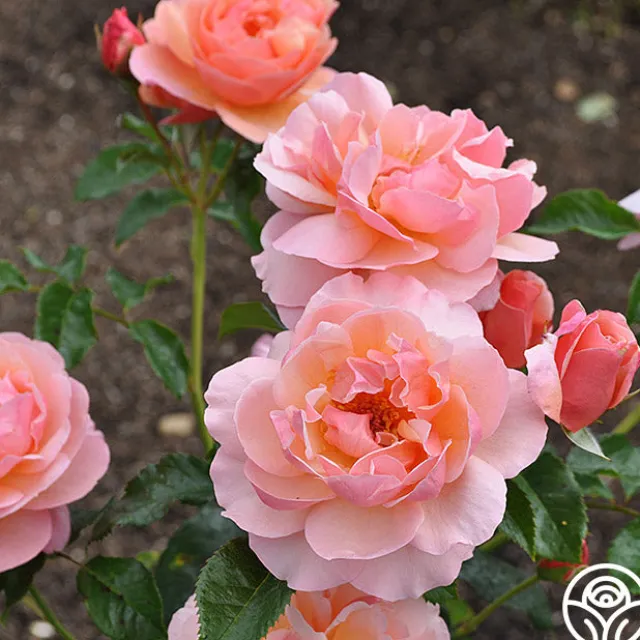 Douglas Gandy™ is a romantic, apricot rose that produces quantities of beautiful, semi-double, rich 4” apricot blooms with 24+ petals each. Flowers are borne in clusters on an outstanding, upright bush that is well clothed in rich green foliage. Douglas Gandy™ is a continual bloomer perfect for zones 5-10.