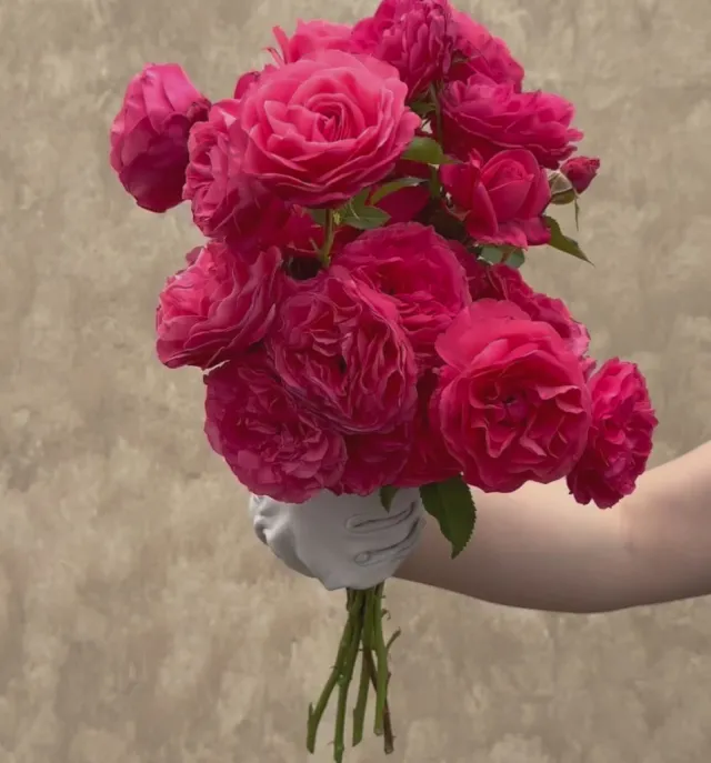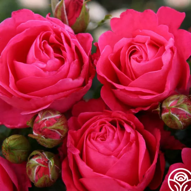 This Hybrid Tea is very resistant to diseases, including blackspot and mildew. The very large, very double, deep pink to cherry-red flowers grow in small clusters. While Eleganza® Fiji’s roses are lightly fragrant, she is a prolific producer. Lightly glossy, medium to dark green foliage fill in the few small gaps left by the clusters of blooms. Eleganza® Fiji is a more compact rose reaching about 4’ tall and 3’ wide which makes it perfect for planting in front of other plants or in a pot.
