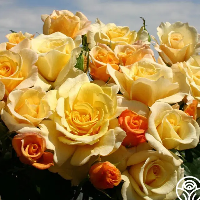 Eleganza® Sunny Sky amazes with her apricot buds opening into large, elegantly shaped petals in honey yellow. Her rare-colored blooms emit a fruity fragrance and sit on sturdy stems, making them a great cut rose. She is a prolific producer of medium, double (17-25 petals) blooms. We love Eleganza® Sunny Sky for her perfect, ruffled petals and cheery coloring – a bright spot on any day!