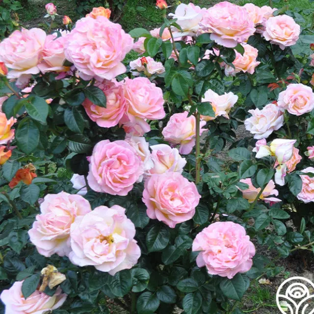 Winner of the All American Award in 2005, Elle® is a compact, bushy, continually blooming rose. Her high-centered, classic, 5″ blooms with 50+ petals of soft shades of apricot, cream, and pink make her an attractive addition to any garden. Elle® has a strong, citrus and spice fragrance and is compact enough to thrive in pots. We love her in small gardens or on balconies as a fragrant showstopper or a first-row plant in garden beds.