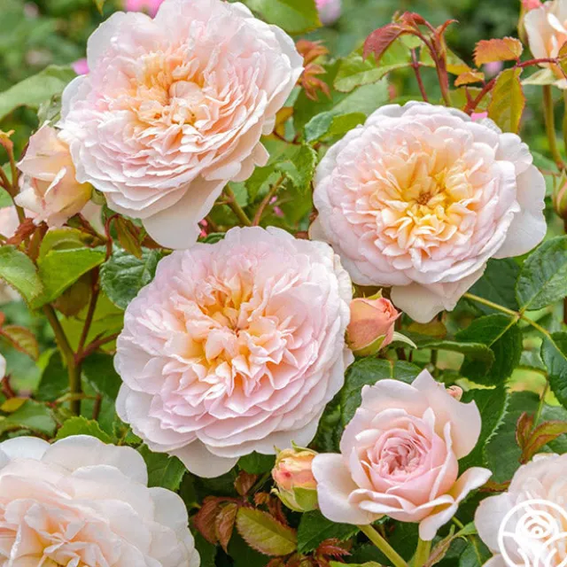 As you draw near, you’ll be enveloped by a fragrance that’s a testament to the rose’s sophistication. The initial strong Tea scent gently transforms into the timeless allure of Old Rose with delightful hints of lemon and grapefruit. Emily Brontë, named to commemorate the bicentenary of the renowned novelist’s birth, grows into a robust, bushy shrub with a vigorous, upright growth pattern, ensuring she becomes a standout feature in your garden.