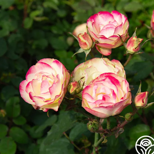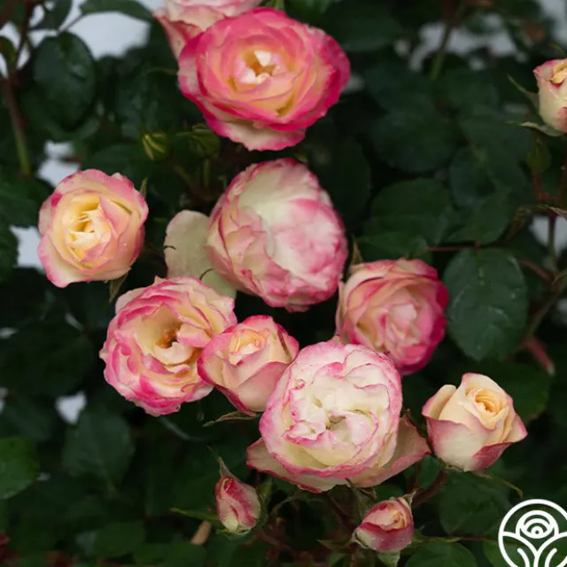 Exclusive New Introduction: Welcome to the garden, Enchanted Meadow™! This unique rose lives up to her name with the coloring of a wild meadow in shades of cream, pink, and very unique green. Enchanted Meadow’s compact blooms are prolific on this disease-resistant rose by Will Radler. She thrives in zones 5 and up with a delightful rounding habit around 3’. Expect more pink color in cool temperatures and more green in hotter temperatures. She might even fool you into thinking she is a Hellebores blossom!