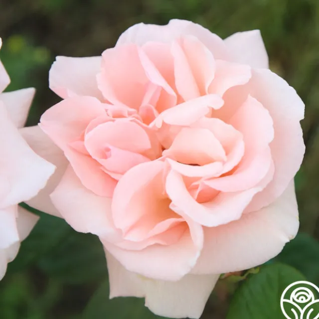 Coming from Peter Beales in the UK, Everest Double Fragrance™ produces large, fully double, shapely, 4″ blooms with 12-15 petals each. Her flowers are borne in trusses of soft powder-pink , sometimes almost apricot, on a continually blooming plant backed by dark-green, leathery, and heavily veined foliage.