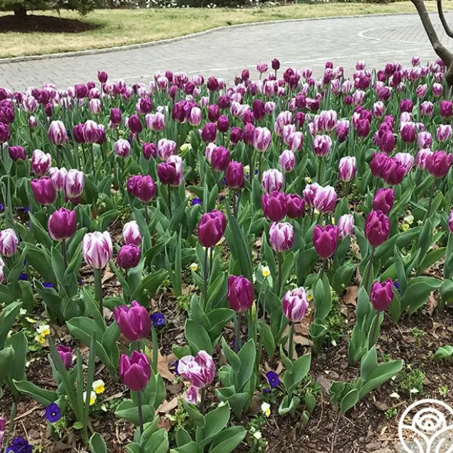Note: Bulbs ship starting in October based on availability and your zone, unlike other products. Plant around or after your first frost but before the ground freezes. The Flaming Purple Mix features a wide selection of single, early and Darwin hybrid tulips in a range of heights. Colors will vary from deep purple to creamy lavender perfect for early spring. This collection looks amazing in a mass planting or potted for excellent color-coordinated potted tulips for gifting.