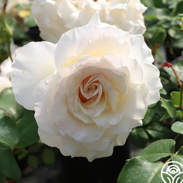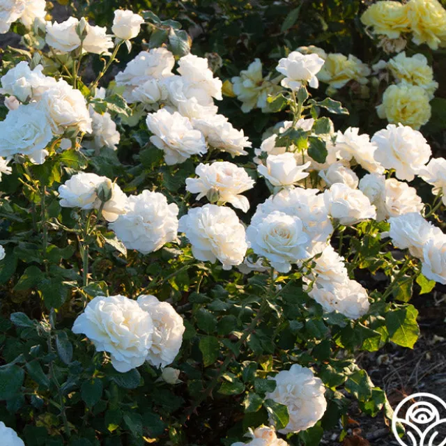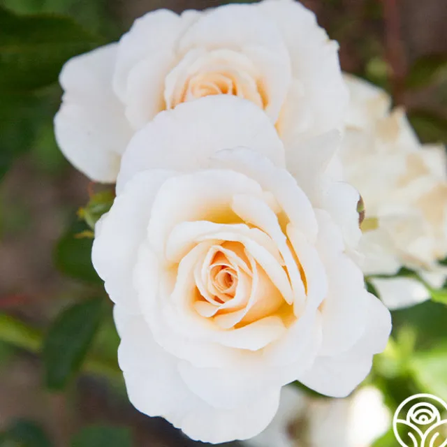 French Lace™ produces delicate, ivory buds with a slight apricot tint that open into very full, classic white, 3 ½” blossoms. Her tall, upright growth habit makes for a statuesque appearance in the landscape. French Lace™ has small, but disease resistant foliage.