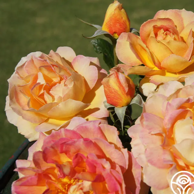 St. Tropez – St. Tropez is a wonderful blend of apricot and orange flowers with ruffled, 5” blooms that emit a powerful fragrance. Her glossy, green foliage covers the bushy plants and sets the stage for a magnificent show of blooms. This repeat bloomer does really well in beds, borders, or pots and is a great choice for zones 5-9.
