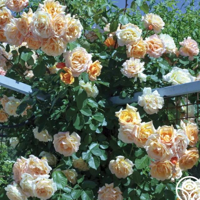 Outstanding clusters of large, yellow-apricot flowers appear early in the season and continue to put on a spectacular show of flushes throughout the warm season. This prolific bloomer with large, cupped blooms has excellent disease resistance and holds up well in the heat! She will make a gorgeous addition to your cut flower arrangements. Garden Sun™ is the perfect Climbing Rose to adorn an arch, pillar, trellis, or other garden structure.