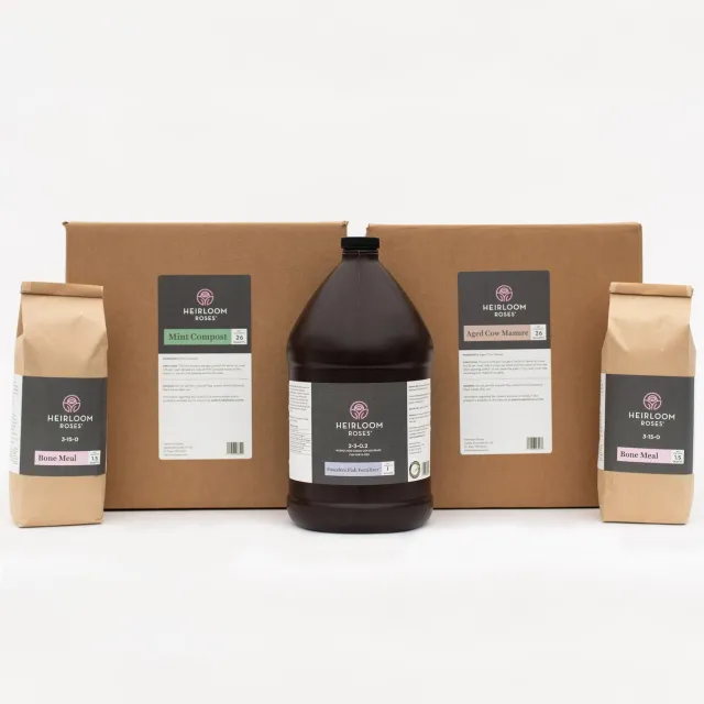 - Our Get Growing Large Bundle is the perfect quantity to care for up to 15 roses and includes: (1 package) 1 Gallon Founder’s Fish Fertilizer, (2 package) 1.5 Quarts Bone Meal, (1 package) 26 Quarts Mint Compost, and (1 package) 26 Quarts Aged Cow Manure.