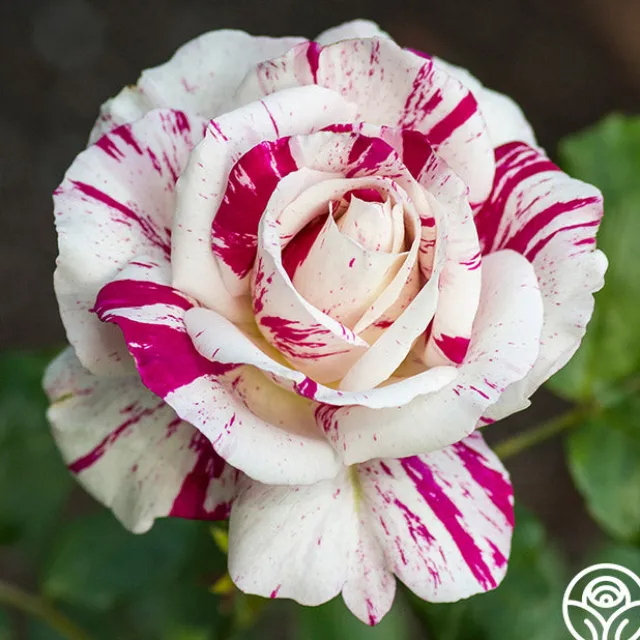 Julio Iglesias™ is unique with his intricately striped petals and camelia-shaped blooms that can grow up to 4-5″ wide. He does particularly well in warmer, west coast climates as the sun deepens the coloring of the blooms. A strong citrus and verbena fragrance floats off the snowflake-like petals, making this a great cut rose. Julio Iglesias™ displays healthy, disease resistant foliage and makes a great statement in your garden or a container.