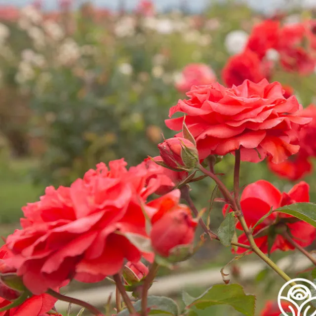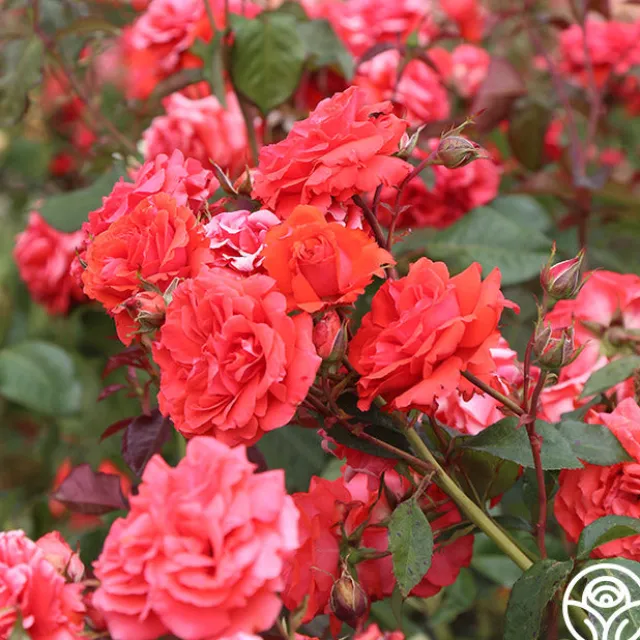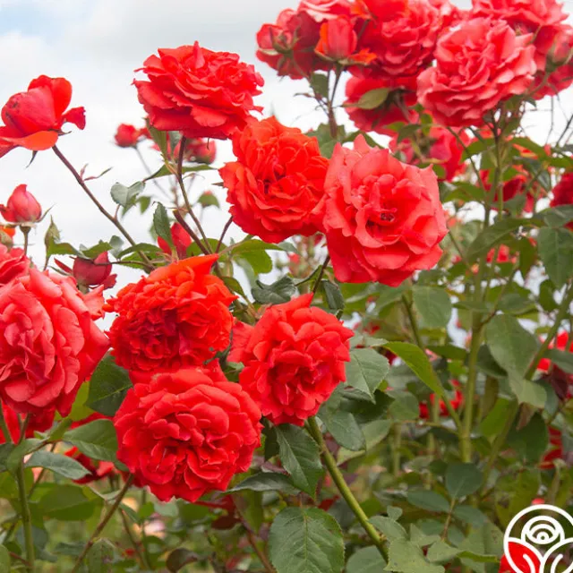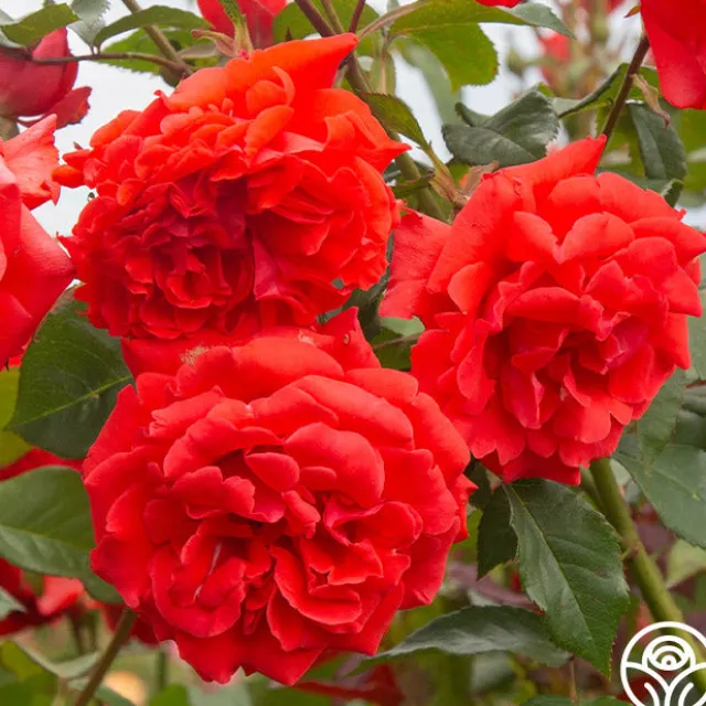 Shades of red and bright orange blend to make a bold color statement for this prolific 4” rose with 42+ petals. Kanegem features large, double blooms ideal for cutting and in excellent exhibition form. She is heat tolerant, robust, and perfect for zones 5-10.