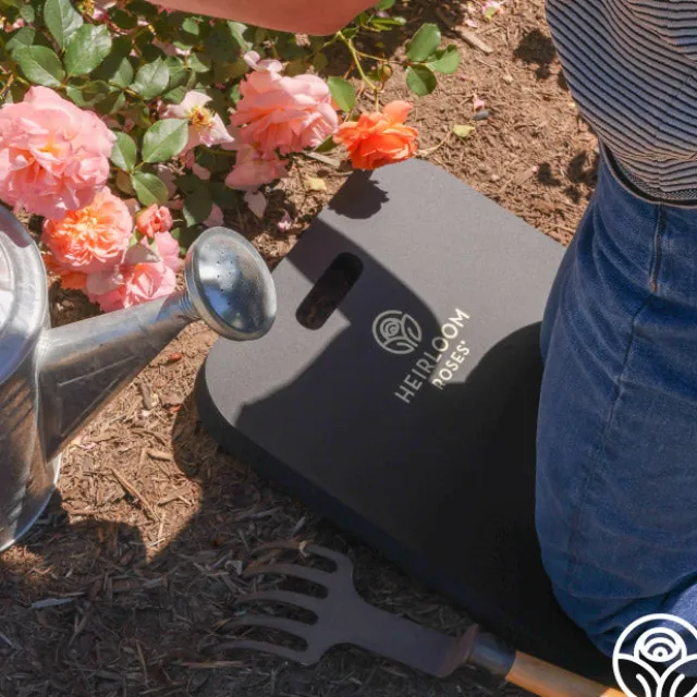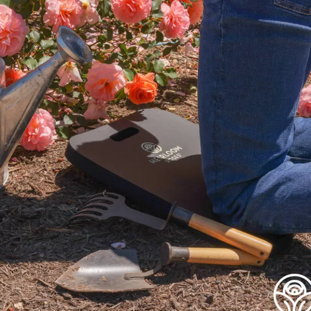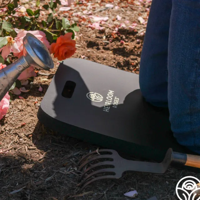 Make working in the garden a breeze with our comfortable foam pad. This 1” thick pad measures 15 x 20” has ample space for kneeling or sitting. It also has an ergonomic handle for easy transport. Weeding and pruning has never been better than with the Heirloom Roses Kneeling Pad. Add one to your order today!