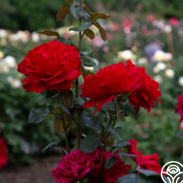 Also known as Josephine, this rose produces massive blossoms up to 8” in diameter with a petal count of 26-40. Legends™ is the brightest, ruby red rose set against unique red-green foliage. Her long stems make her the perfect cut rose and she emits a moderate fragrance – not too strong and not too faint. Expect Legends™’ blooms to be largest in the cooler temperatures of spring.