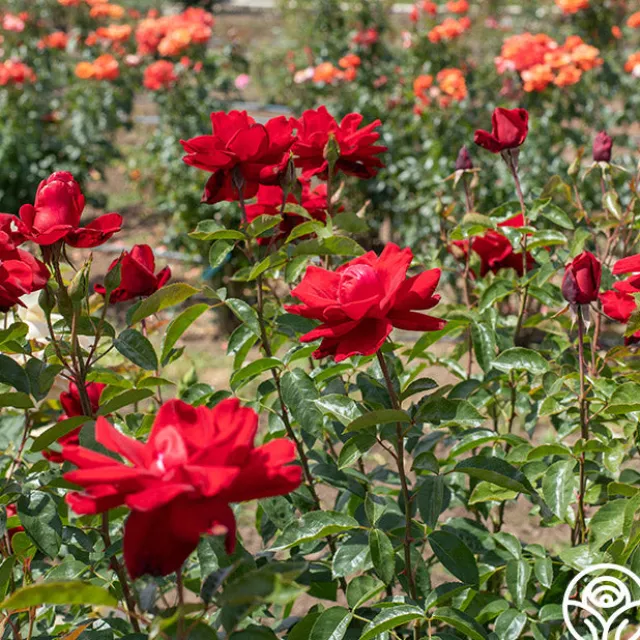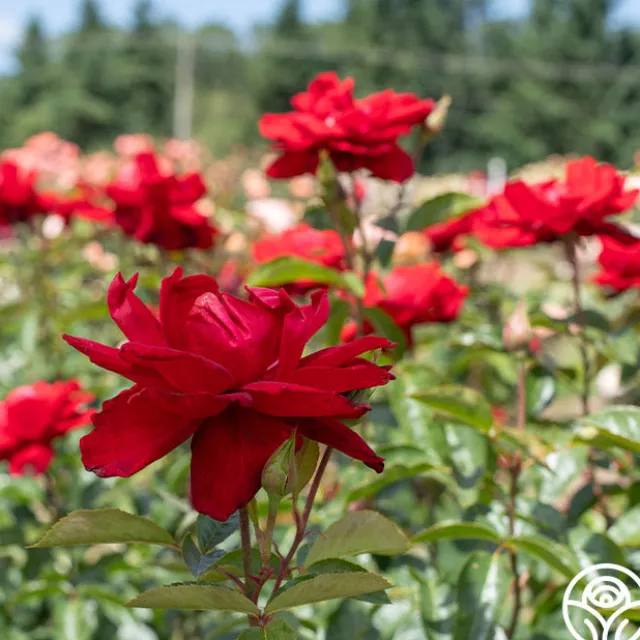Madame Delbard® was in high demand, so we brought her back! An older florist Hybrid Tea with lovely, red-black, 4″ blooms, Madame Delbard® makes a wonderful cut flower on a strong, continually blooming bush. She has a petal count of 25+ and the most perfect, deep red coloring – truly, the perfect red rose you’ve been looking for!