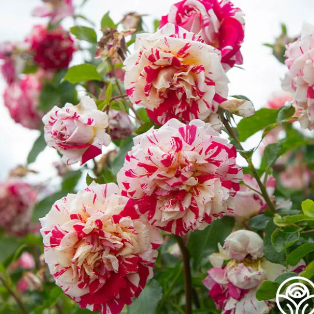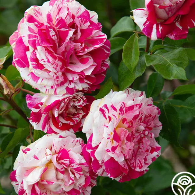 This rose is a “diamond” in the garden. His classic rose fragrance sets the stage while his unique speckled and striped blooms steal the show. With colors varying from dark raspberry to blush white, Neil Diamond’s blooms sit atop long stems and are draped with medium green, glossy foliage. Not only does this rose have a punch of color, but it can also fight off powdery mildew and rust. The long, pointed buds open up to double, classically formed flowers with 40-50 petals each. Add Neil Diamond to your “music” section of the garden, and he will perform all season long!