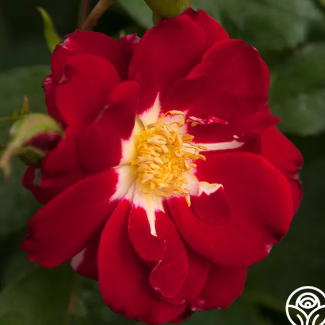 A stunning, winter-hardy Griffith Buck rose, the red blooms are borne in clusters of 1-10 and have a moderately sweet and spicy fragrance. A repeat bloomer with compact, semi-glossy green foliage, the cardinal-red open 4” blooms darken with age. A full bloom adds bursts of color in the garden, border, or even in a vase for display in your home.