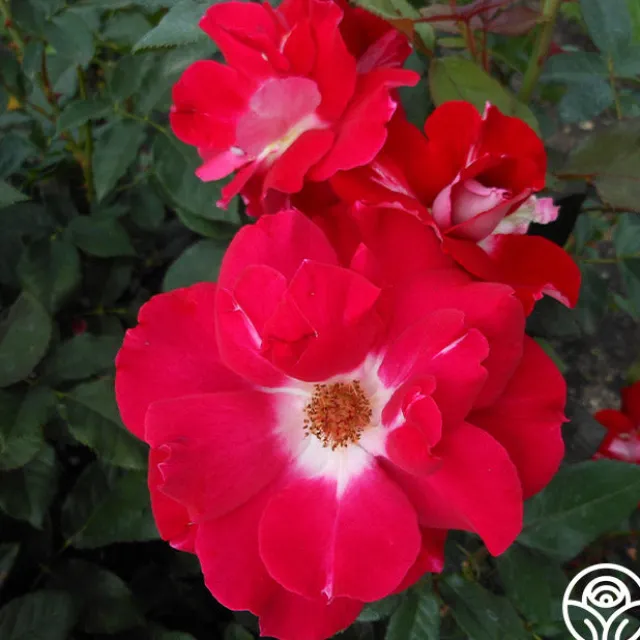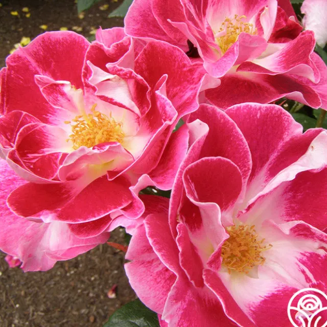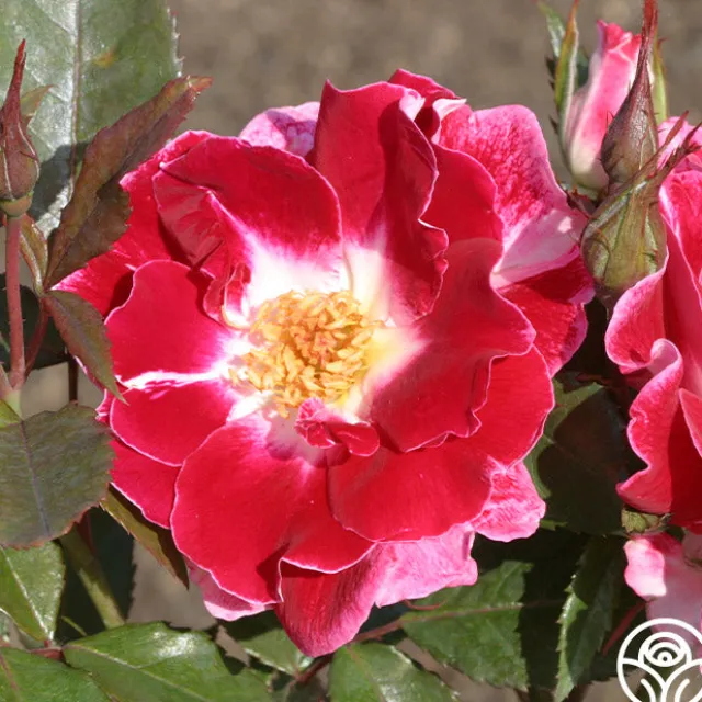 Old Master is one of the first of the hand painted roses bred by Sam McGredy in the 1970s. This novelty of a rose is sure to attract attention in the garden with its 4.5”, crimson-red blooms with a white painted center and reverse petals. Unlike other hand painted roses, the colors are fairly stable throughout the season and the clusters of blooms will form a very colorful display.