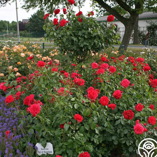 This gorgeous Floribunda features large, double flowers of the purest red with a gentle fragrance. Out of Rosenheim™ is a bushy, upright plant with blooms of over 40+ petals and semi-glossy foliage. It will continuously bloom all season and thrives in both containers and beds. This beauty is prized for its high resistance to disease.