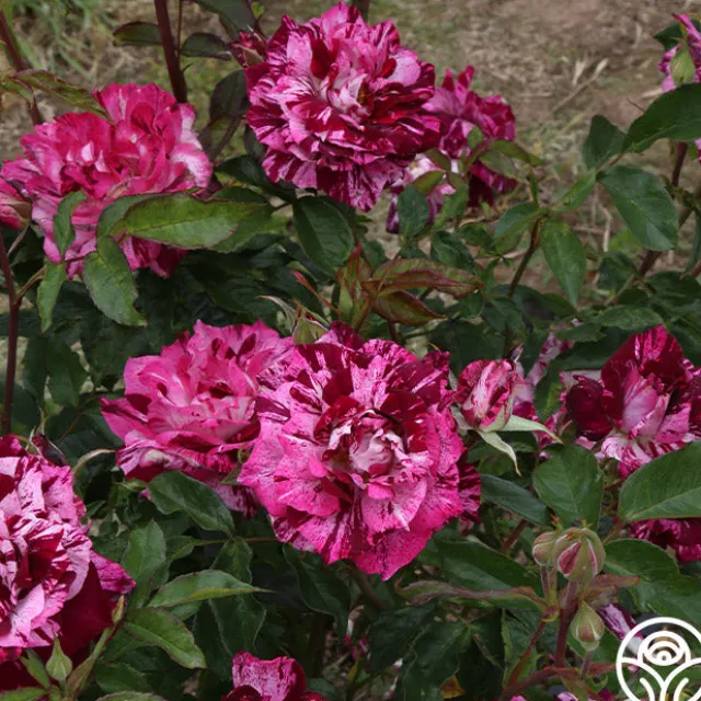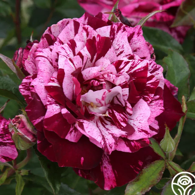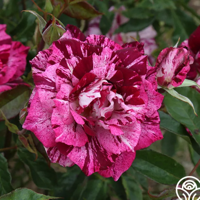 TOP SELLER! Prepare to be stunned by the unique splash of Purple Tiger. Each unique bloom and petal seems to explode in a colorful rhythm of slashes, dashes, streaks, and dots as if splattered on by an artist. A citrus-sweet perfume and minimal thorns are an added bonus! Any lover of purple roses must add this rose to their collection.