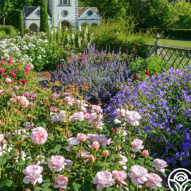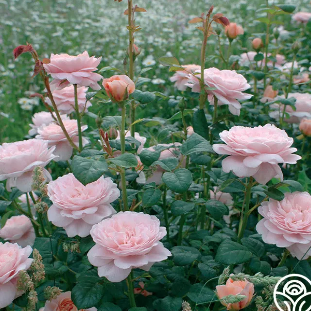 Queen of Sweden® makes an excellent addition to a cutting garden with minimal thorns and long, tall stems. Her wide, shallow cupped blooms with over 100+ petals are graced in a soft, apricot-pink and emit a mild myrrh fragrance. Her blossoms are truly beautiful at any stage. Queen of Sweden® is an upright, repeat blooming rose with a bushy growth habit. She thrives in zones 4-11and can handle dappled shade or growing in pots on a balcony or porch.