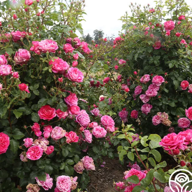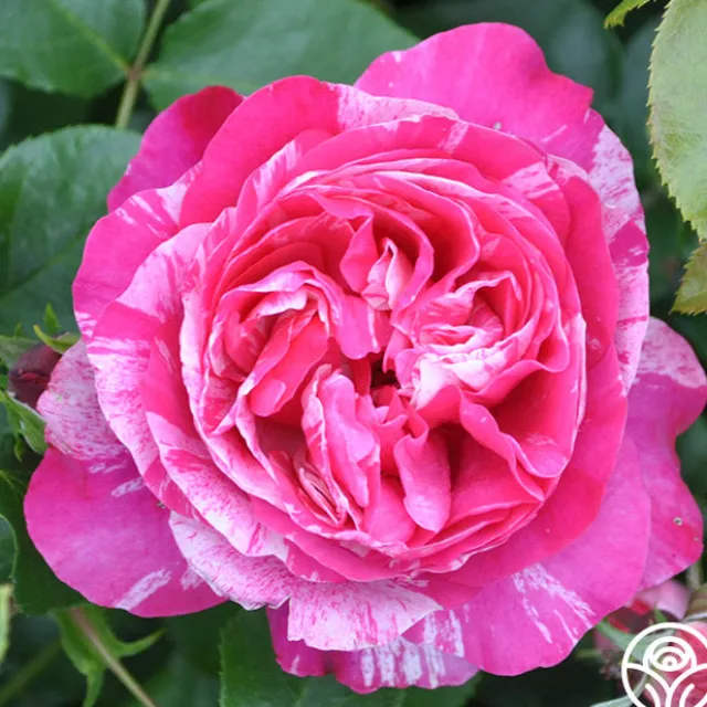 Raspberry Cream Twirl™ lives up to her name with deep pink petals striped with white and purple streaks. She is the first striped Climber with classic, exhibition-type blooms. Her large, very full, cuplike blooms emit a light apple fragrance. Raspberry Cream Twirl™ is a vigorously growing rose and will top out around 10-12’ tall and 4-5’ wide. She makes an excellent cutting rose and is nearly thornless too, making her perfect for high traffic areas or to climb pillars.
