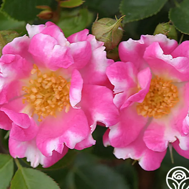The small ruffled blooms on Raspberry Ruffles™ almost make you want to hug her! Her raspberry, candy-pink 2 ½” blooms are made up of about 12 very ruffled petals, each with brush strokes of snow white on the margins. Raspberry Ruffles™ is a unique, compact, continually blooming, upright plant with many canes. She has a light fragrance but her open flowers will draw all the pollinators to your garden.