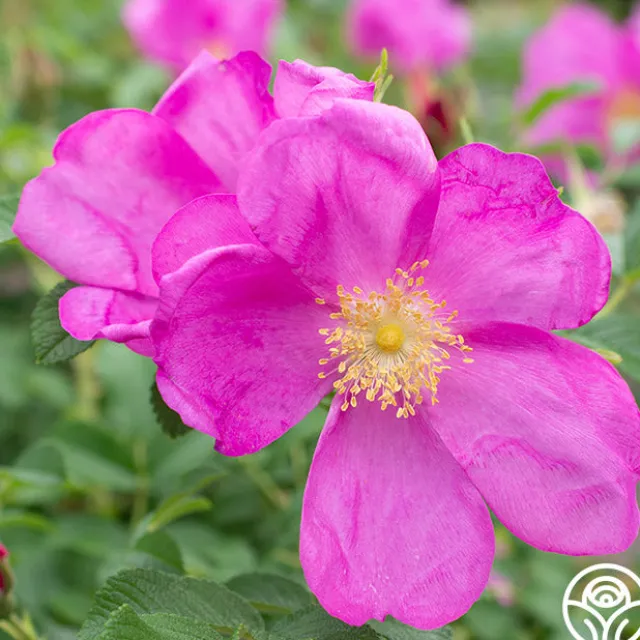 A true groundcover version of the popular Rugosa variety, Raspberry Rugostar® produces deep pink blooms that cover the plant from June throughout the warmer months. She has a delightful, light clove fragrance and is very disease resistant. Expect Raspberry Rugostar® to keep compact at under 3’ tall but spread between 4-8’ wide making her a great choice as a groundcover.