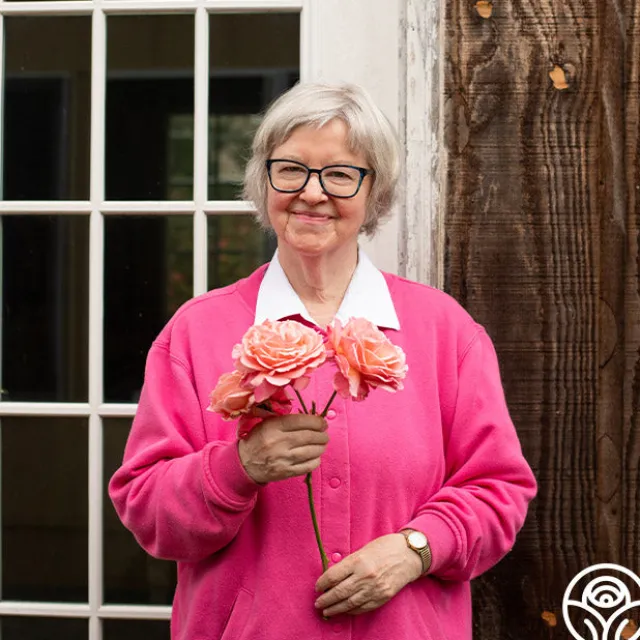 Reach for the Skies is a stunning climber hybridized by John Jelinek, a friend of Heirloom Roses. This Climber has fully double blooms with nearly coral pink-orange petals with a yellow center fading to a gentle pink as she ages. She features long stems with small clusters of blooms of 45-60 petals each. Reach for the Skies lives up to her name as she stretches for the sun and reaches between 8-10′ tall. A beautiful cross between Lilian Austin x Summer Wine, Reach for the Skies is a must-have for your new trellis, pillar, or arbor. We are extremely grateful to Nancy Jelinek for allowing us to photograph John’s original rose in their own home garden right here in Oregon.