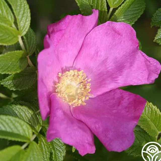 Rosa Rugosa is the original wild Rugosa from Japan. Her blooms of reddish-purple are followed by large, beautiful hips on a vigorous, easy-to-grow bush that thrives in poor conditions, even at the seashore. She has a great, strong fragrance and is a repeat blooming bush. One of the hardiest roses available, she thrives in zones 2-9.