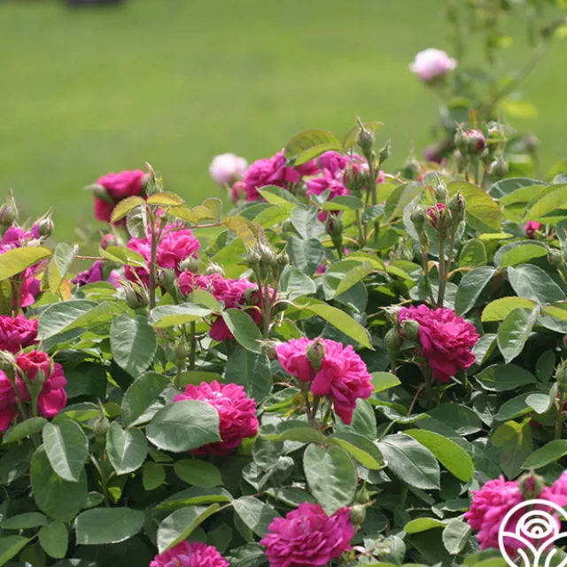 Discovered in the UK, Rose de Rescht is an old-fashioned, fully double rose with 50+ petals in elegant, fuchsia-crimson coloring. She emits a deliciously wonderful fragrance. Expect her to stay compact and give a spring or summer flush with scattered blooms. We love her medium-green foliage with red edges when young as a point of interest in the garden. Rose de Rescht is shade tolerant and thrives in zones 5-10 as a truly, hardy rose!