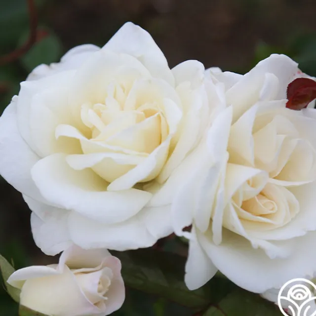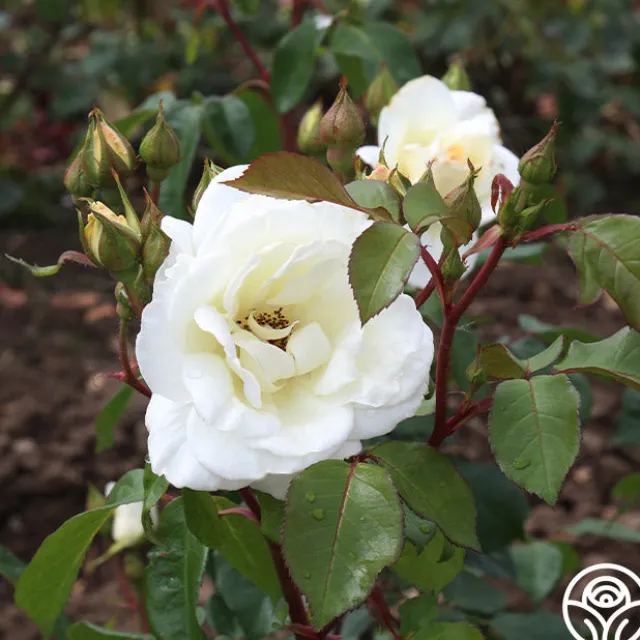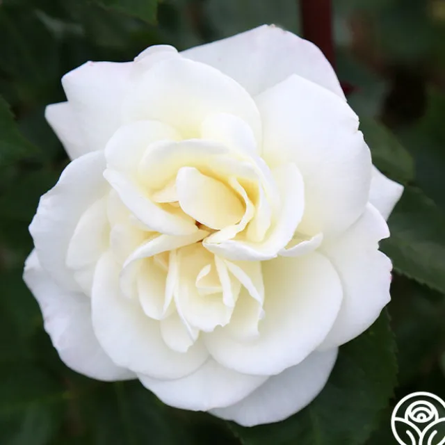 Lovely, double 4″ blooms (petals 33) of gardenia white. Borne in clusters on a vigorous continually blooming bushy plant with leathery green foliage. AARS winner. Very fragrant.