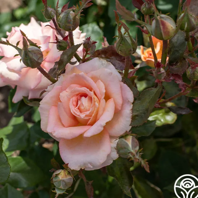 Scent-sation is one of the most fragrant Hybrid Tea roses in phenomenal creamsicle coloring. Her high-centered, 5″ blooms with a petal count of 45+ have impeccable form in a blend of creamy orange and soft, peachy pink. Blossoms form singularly and occasionally together in clusters on a tidy, continual blooming, bushy, and vigorous plant with dark green foliage. She is sensational in every way, just as her name implies. We love continually blooming Scent-sation in pots or garden beds.